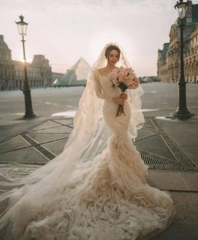 作为今天的主角曾乐彤当然也是在人群中最为耀眼,婚宴上的她身穿着一条低胸短礼裙,拖尾的设计很是特别,一个简单的发型搭配着头纱,简单而又不失气质。