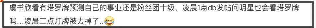 讽刺的是,任凭舆论如何质疑,虞书欣对这些争议就只有沉默回应,让大家都以为虞书欣断网了。但实际情况是,虞书欣本人时刻关注着网上有关自己的舆论,这次被网友凌晨一点发现充钱看塔罗牌之后,虞书欣凌晨三点就把灯牌撤了下来,这效率,用在正确的地方该多好。