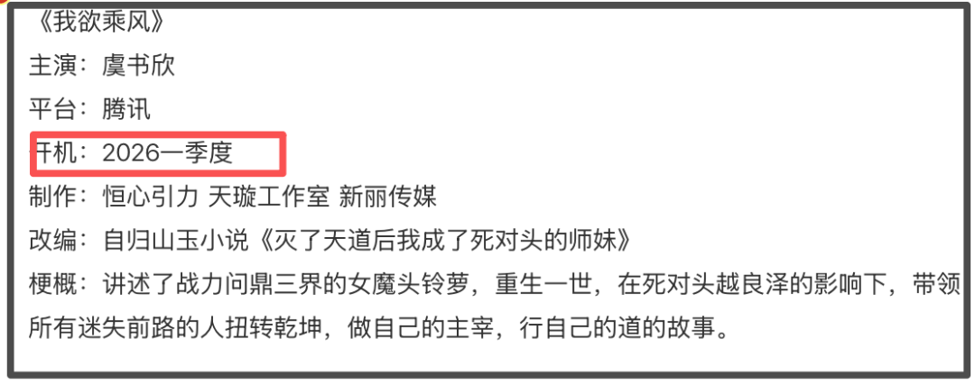 同样的,网传虞书欣还有一部新戏《我欲乘风》,将在2026年第一季度开机,现在《一念江南》都被疯狂抵制,这八竿子打不着的戏就更别提了。