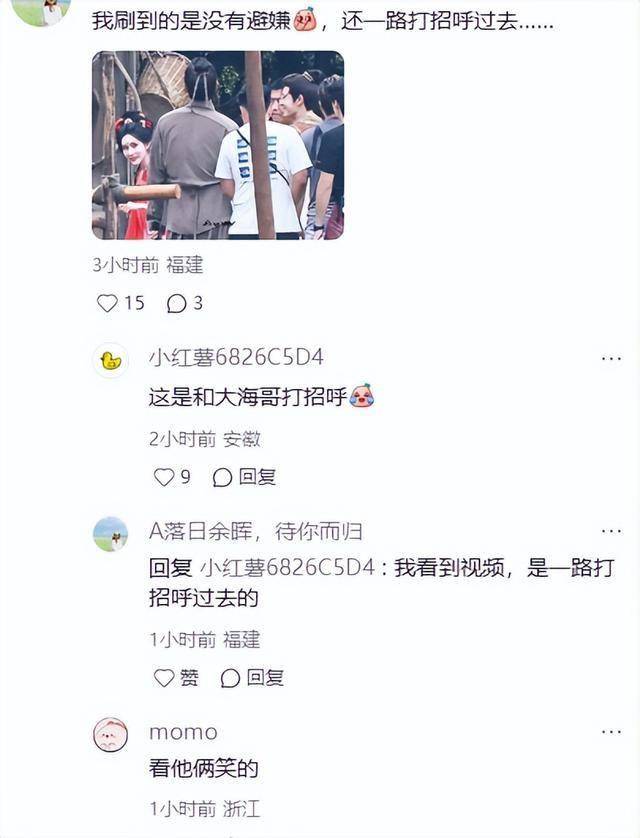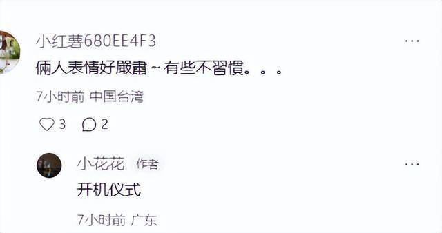 但除了正式的开机仪式外,两人私下里在片场里也有互动,面部表情也挺松弛,笑得还挺欢乐,并没有因为传言就尴尬。