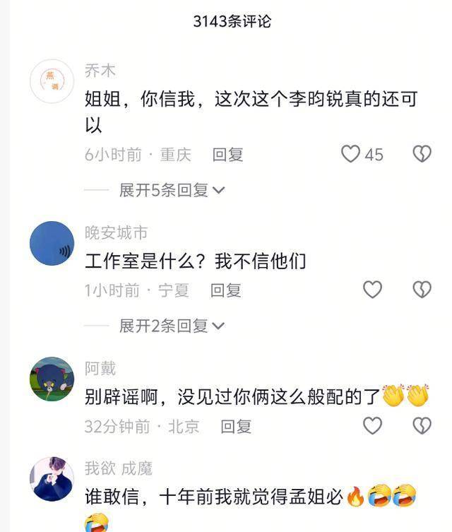 孟子义、李昀锐被曝恋爱还一起过夜的传闻一出,女方的社交平台一度沦陷,前排全是希望两人在一起的评论。