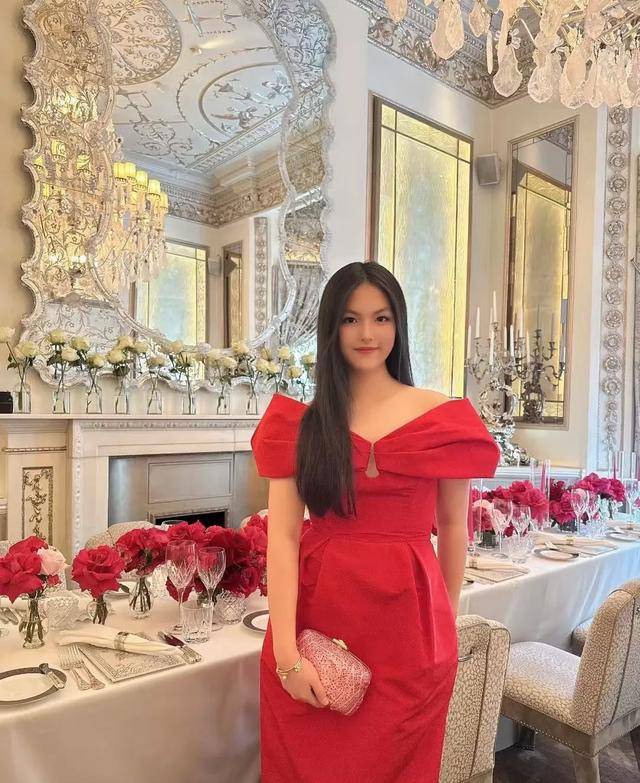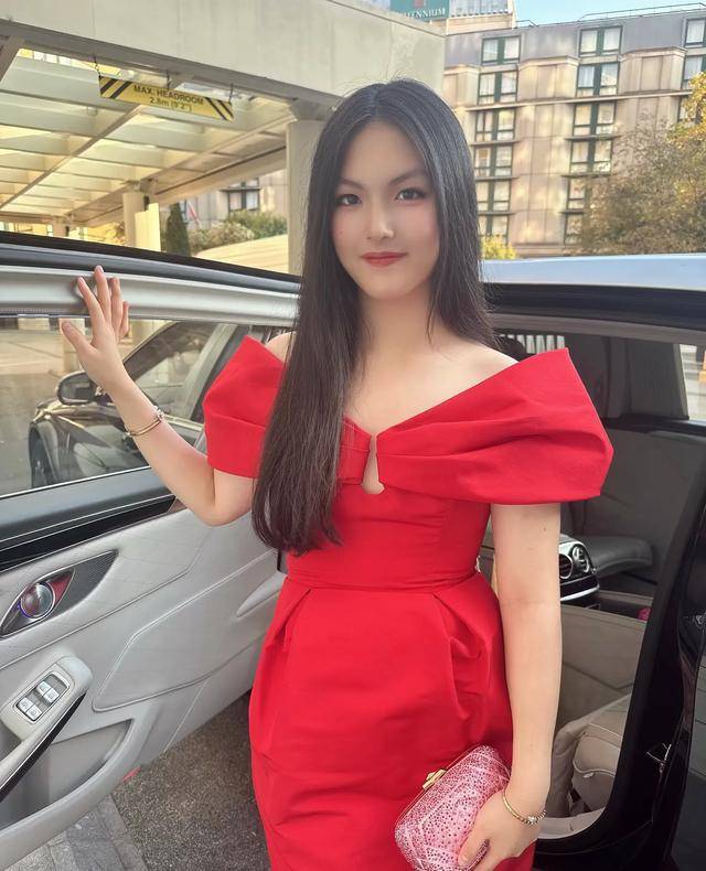 王诗龄穿了一件红裙,留着中分长发,造型干净利落,妆容清爽,她整个人大大方方,很是端庄,也很自信。全场被众星捧月,像公主一样。