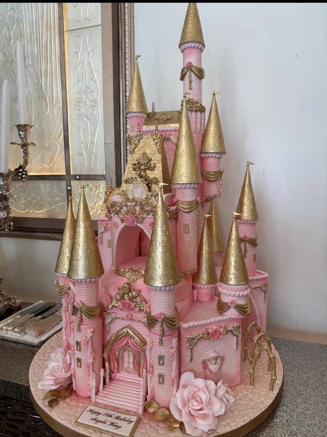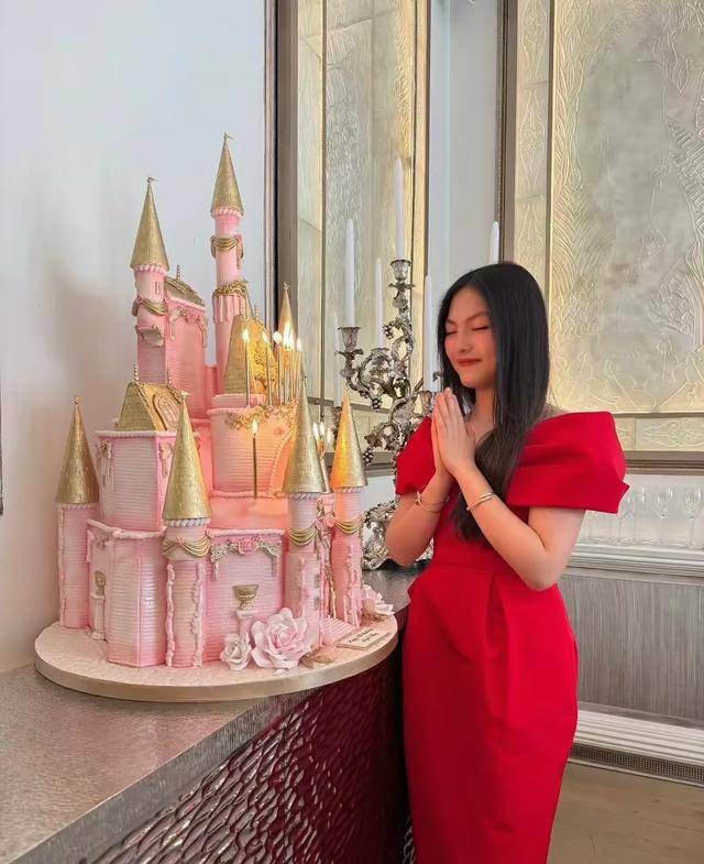 生日蛋糕是巨大的粉色城堡蛋糕,像迪士尼乐园中的城堡,蛋糕不止还原完美,而且巨大,差不多有半个人高。王诗龄在生日蛋糕面前许愿,真如公主与城堡组合。
