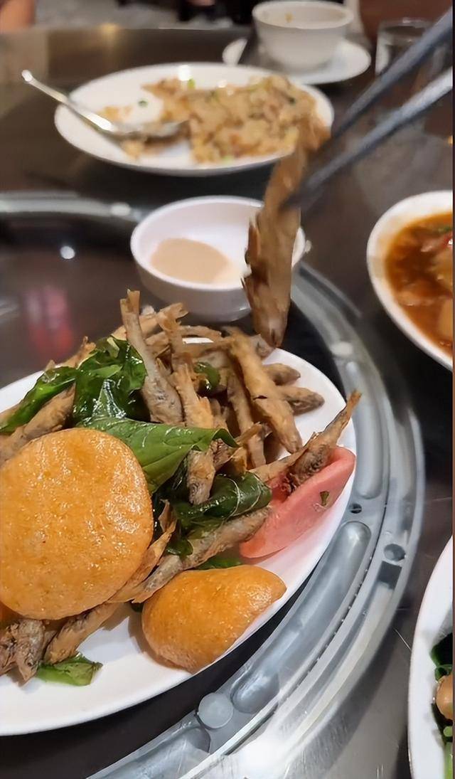 虽然炒菠菜、炒豆腐、炸小鱼这些家常菜跟山珍海味没法比,但一家人坐一起聊天吃饭却很温馨,没有星二代的光环,只有家人的欢声笑语。