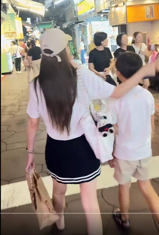 不得不说她的身材比例确实很棒,这种穿搭腿看起来还这么修长。