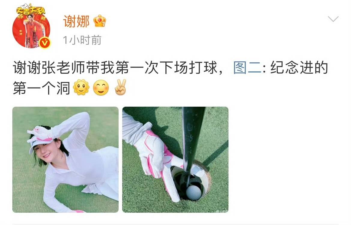 值得一提的是,谢娜这次的进球也颇具意义。从她配文的”纪念进的第一个洞”来看,这个进球对她来说意义非凡。毕竟,从”闲杂人等”到能下场打球,谢娜的高尔夫之旅终于”正式出道”了!