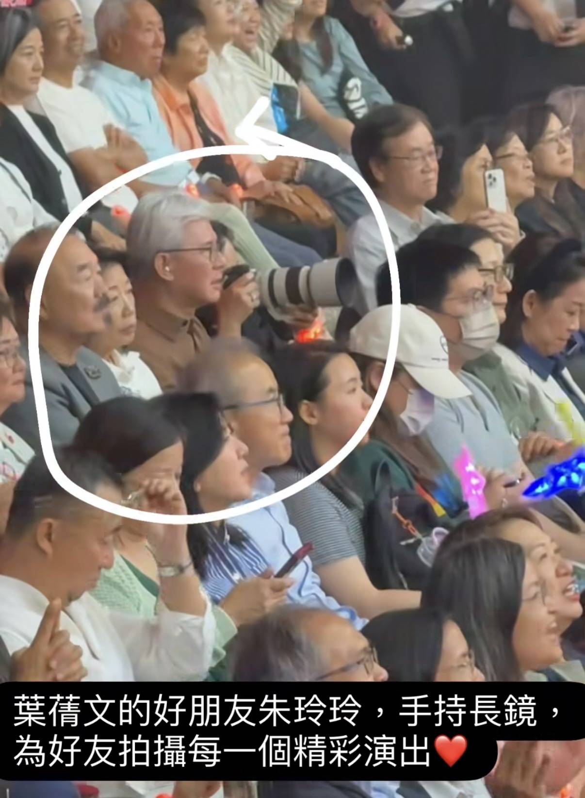 除了有亲友的到场支持外,叶蒨文的闺蜜朱玲玲也在首场现身。朱玲玲并非单身前往,她的第二任丈夫罗康瑞也陪同出席。朱玲玲当天穿了黑色的衣服现身,没有很刻意地打扮,不过难掩贵气,本就是雍容华贵之人,怎么穿都彰显气质。罗康瑞的打扮也很随意,还背了一个小挎包,77岁的他满头白发,看起来颇为慈祥。朱玲玲还专程背了一个长镜头到现场,拍摄下闺蜜在舞台上的风采,事实上,叶蒨文每一次演唱会,朱玲玲都会现身支持,每一次都会带上了长镜头捧场,相当专业。