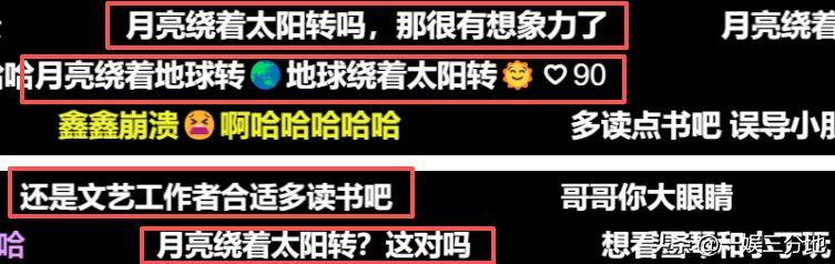 只不过,即便有节目组的花字吸睛,王星越之后给出的“月亮绕着太阳转”的答案,还是暴露了他的“无知”。