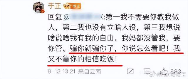 这出闹剧让“骗你就骗你了”这句经典台词再度翻红。原话出自编剧于正2024年9月的霸气发言:“骗你就骗你了,你说怎么着吧!我又不靠你的相信吃饭!”当时这种公然蔑视公众信任的态度引发轩然大波,如今却成了内娱声明的真实注脚。