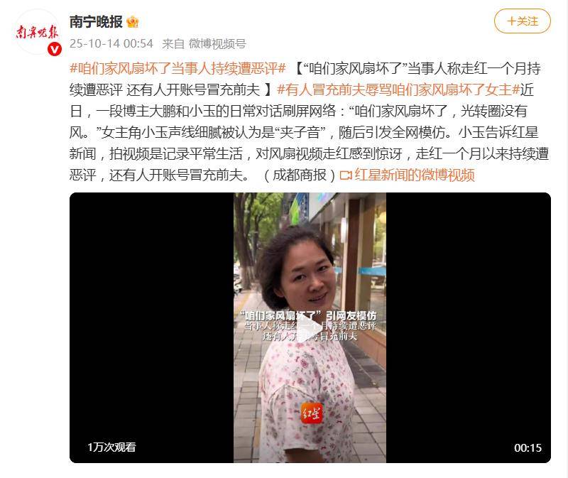 据10月14日报道,小玉坦言,拍摄视频初衷只是记录平凡生活,对风扇视频的意外走红感到惊讶。但随之而来的不是祝福,而是持续不断的恶意评论。有人嘲讽其声音“矫揉造作”,有人直接攻击其外貌,更有人将她曾提及的家暴经历翻出,质疑其“卖惨博同情”。