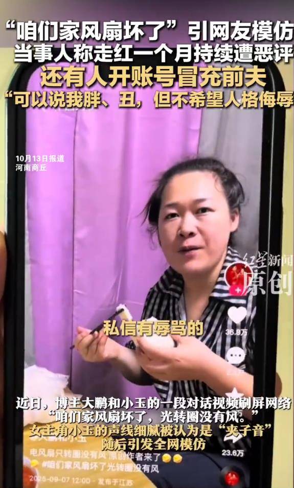 最近,一段关于博主大鹏和小玉的日常对话突然刷屏:“咱们家风扇坏了,光转圈没有风。”女主角小玉因声线极其细腻,被网友贴上“夹子音”标签,随即引发全网模仿热潮。然而,走红仅一个月,这场流量盛宴却迅速演变成一场针对小玉的网络围剿。