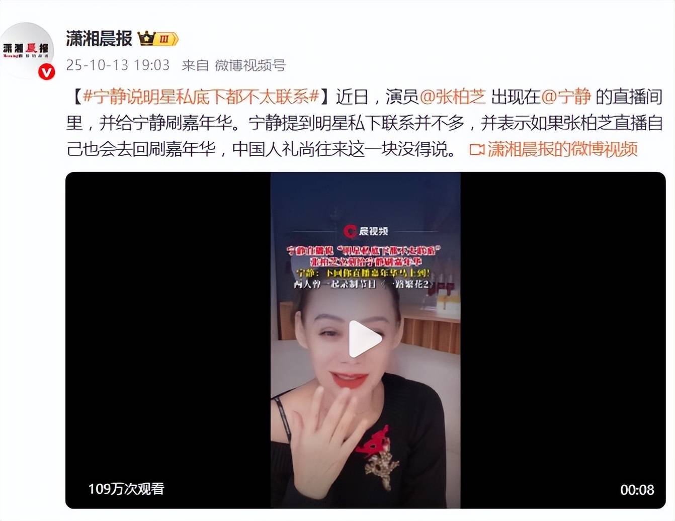 “明星私底下都不太联系”,10月11日,演员宁静在直播间轻描淡写的一句话,撕开了娱乐圈人际关系的华丽泡沫。当她与张柏芝隔屏互动时,这句看似随感的感慨,恰逢张柏芝刷
