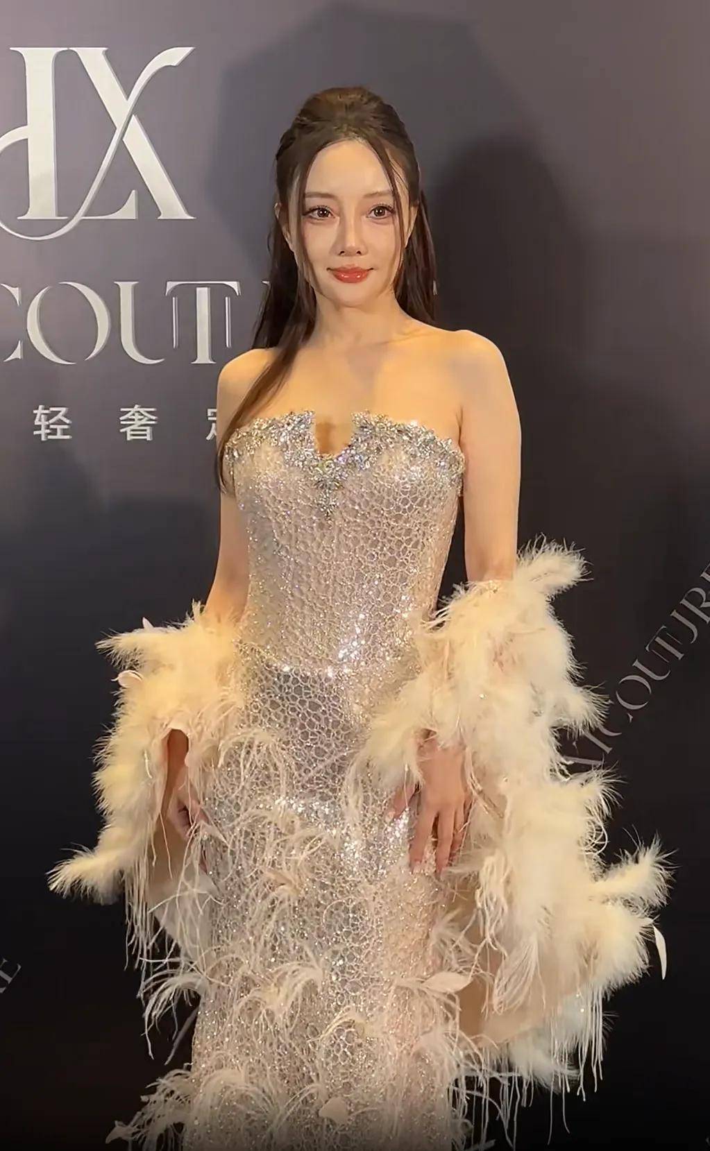 下了T台,李小璐换了一条银色亮片一字肩羽毛长裙,这条凸显身材曲线的裙子明显跟她的气质更搭,更能凸显她作为成熟女性美艳的一面。当然了,如果她能换个发型甚至改个妆容风格会更高级,毕竟高颅顶和龙须刘海搭配瞩目的卧蚕、阴影打满的鼻子、画到嘴唇外的亮面嘟嘟唇妆,真的很网红。