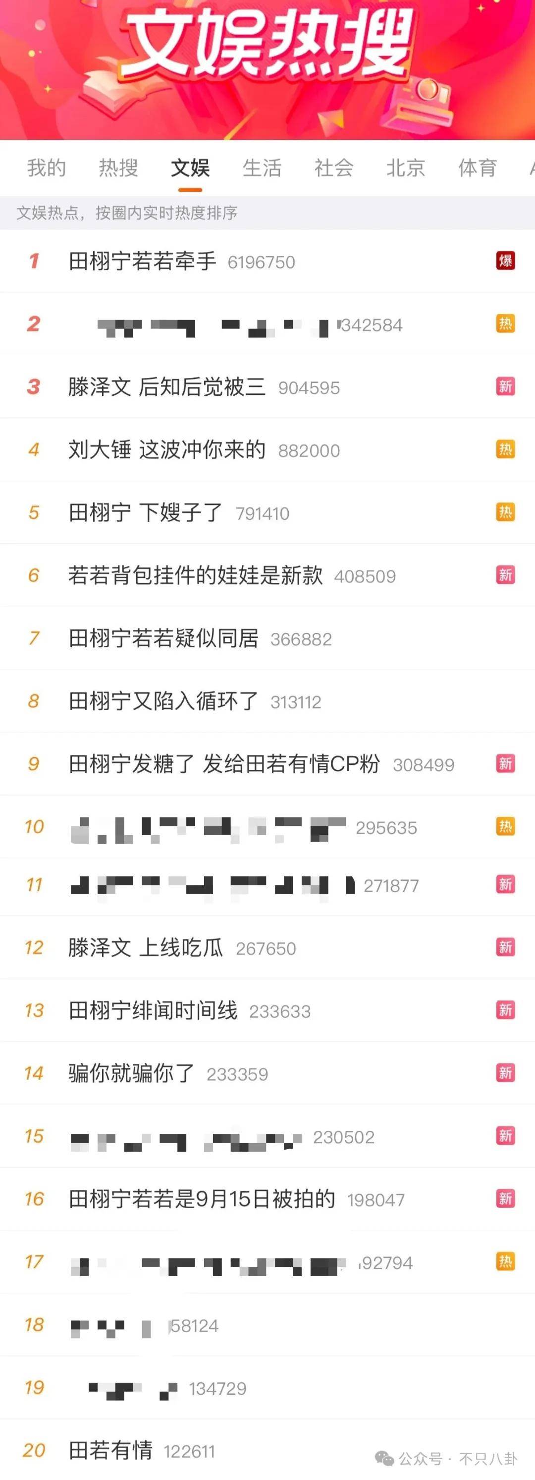 直到今年7月田栩宁不断被曝恋情,滕泽文才意识到自己当初是“被小三”了。