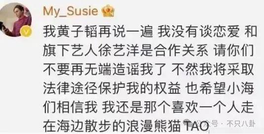 曾几何时,黄子韬也斩钉截铁地否认与徐艺洋恋爱,他说徐艺洋是旗下艺人,只是合作关系,还怪网友对他们无端造谣。