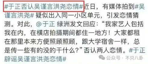 洪尧吴谨言被狗仔拍到过无数次,也被网友扒出过多次同游的证据,于正每次都能编出各种理由来否认恋情。
