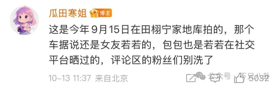 跟拍的八卦媒体也强调:视频是今年9月15日在田栩宁家地库拍的,开的车据说还是女友若若的。