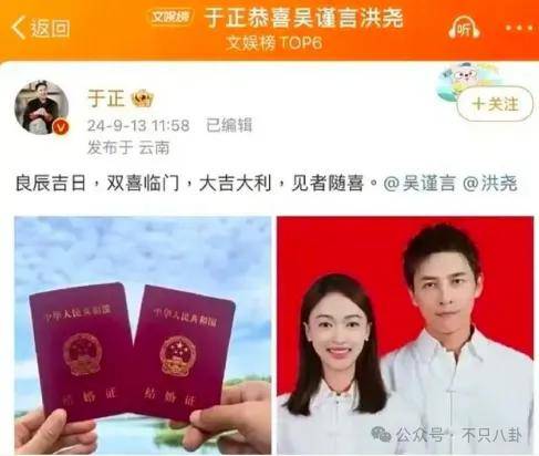 结果于老板玩得一手好文字游戏,“双喜临门”还不忘庆祝吴谨言又婚又育。