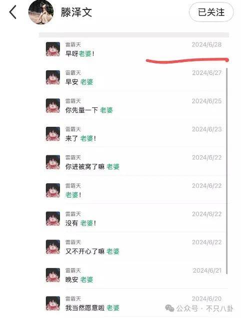 滕泽文曝光的聊天记录中,田栩宁这一口一个“老婆”,叫得那叫一个腻人……