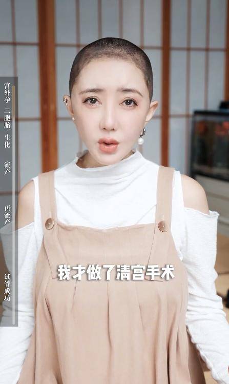 幸运的是,这次试管第6次成功怀上了宝宝,听人说剃头对宝宝好,梁晶晶直接将一头秀发全剃掉,只为了能保住这来之不易的孩子。