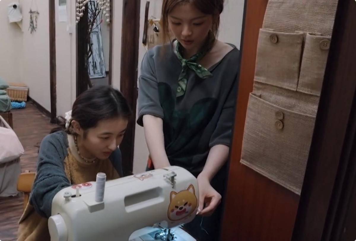 在这一期的节目中,杨超越不仅重新启用了那台缝纫机,还成为了张子枫的“手工老师”。她耐心地指导对方,一边轻声叮嘱:“你轻轻拿着,别歪了。”张子枫认真操作,杨超越则温柔地教导着,这一刻,镜头所呈现的温暖与生活感,让节目从戏剧化的创作回归了平凡的日常。