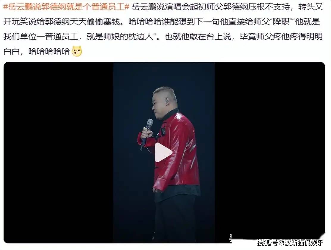 在演唱会进行到一半的时候,岳云鹏突然提到了郭德纲,他没有直接说郭德纲缺席的事情,而是用了一种幽默的方式,调侃起了郭德纲的地位。