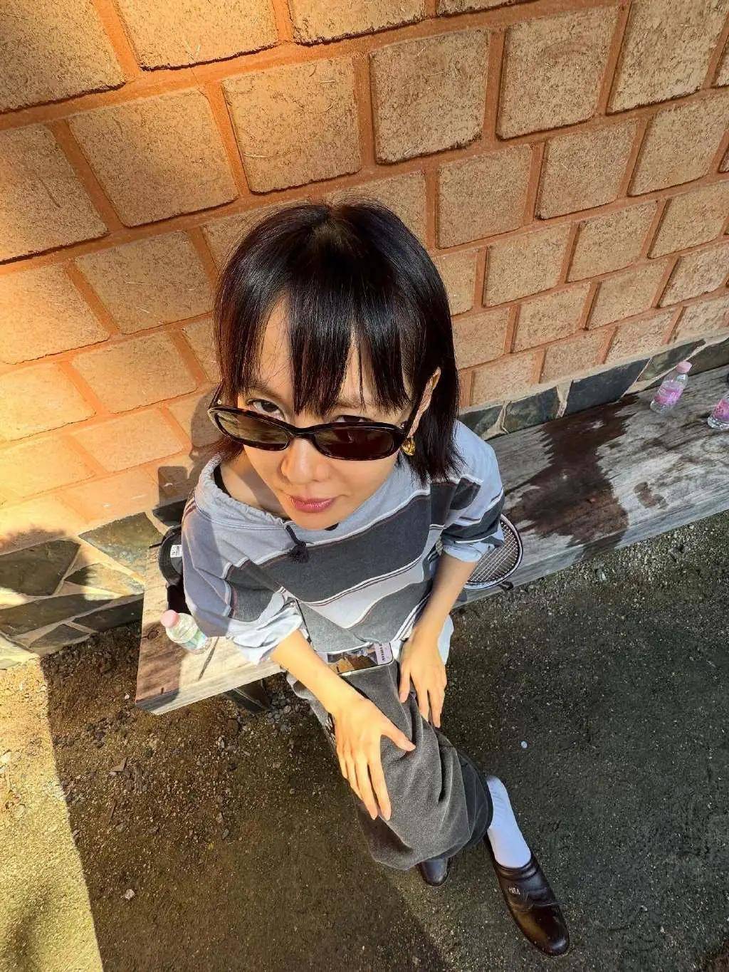 10月13号那天,孙艺珍突然在社交号上发了组旅行照片。镜头里她剪了短发,单手扶着墨镜、翘着二郎腿坐那儿,笑劲儿藏都藏不住,连眼神里都透着放松——这可是她产后复出