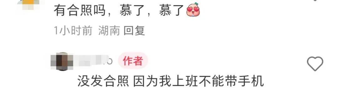 还有网友激动的问:有合照吗,慕了,慕了。博主回复:没发合照,因为我上班不能带手机。