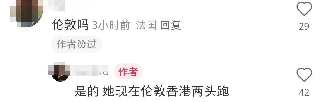 评论区,有网友追问:伦敦吗?博主回复:是的,她现在伦敦香港两头跑。