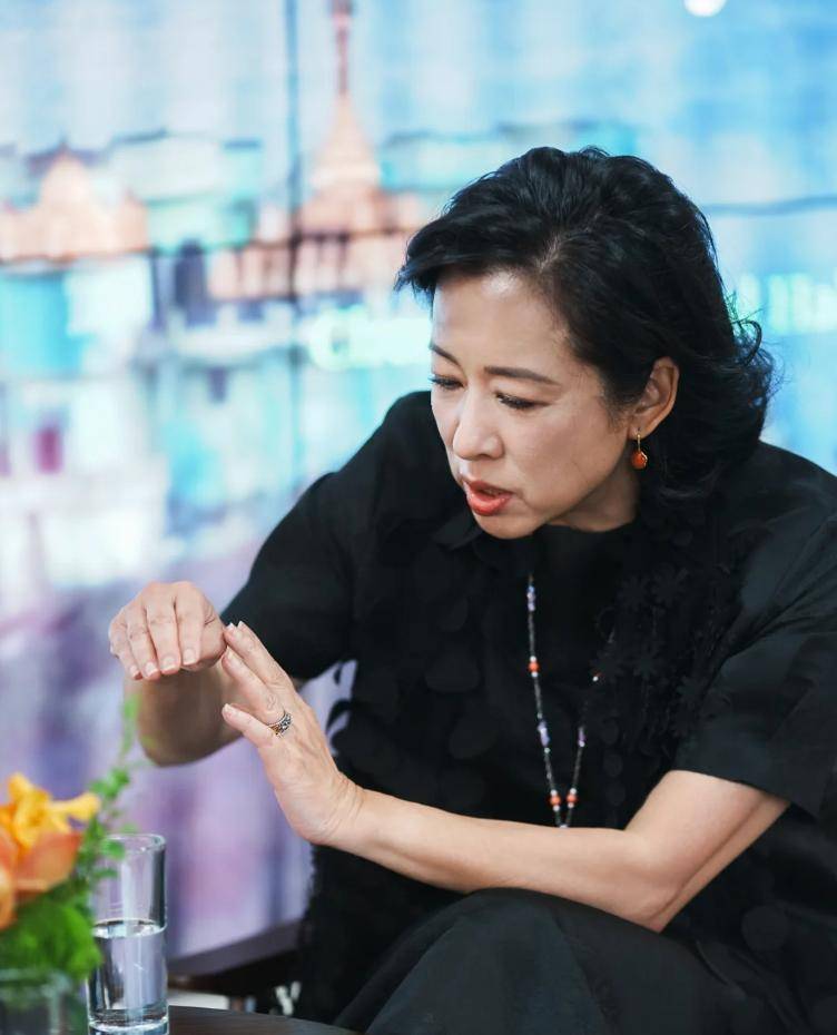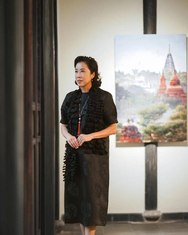 开展当天,已经67岁的朱玲玲现场讲解,一袭黑色缎面长裙,配了红色的首饰,更显她的端庄贵气。