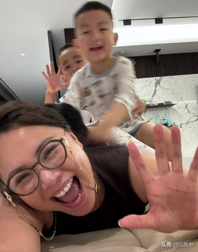 这两个小家伙,简直是妈妈的“迷你复刻版”,圆乎乎的小脸蛋,饱满的额头,一笑起来就自带满福光环。