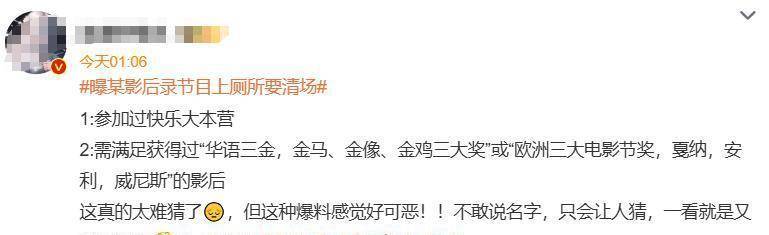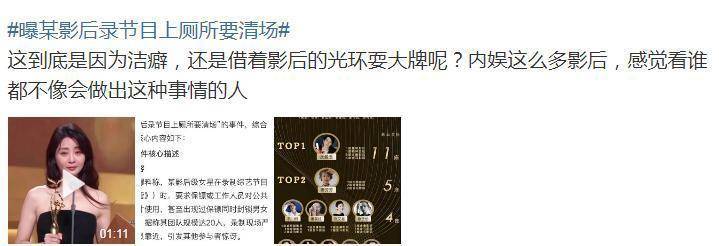 这位工作人员还补充说,这位影后其实不是第一次这么摆架子。大概十多年前,她在录另外一档综艺时,连去洗手间都得两名保镖守在门外,防止其他工作人员或嘉宾进去。