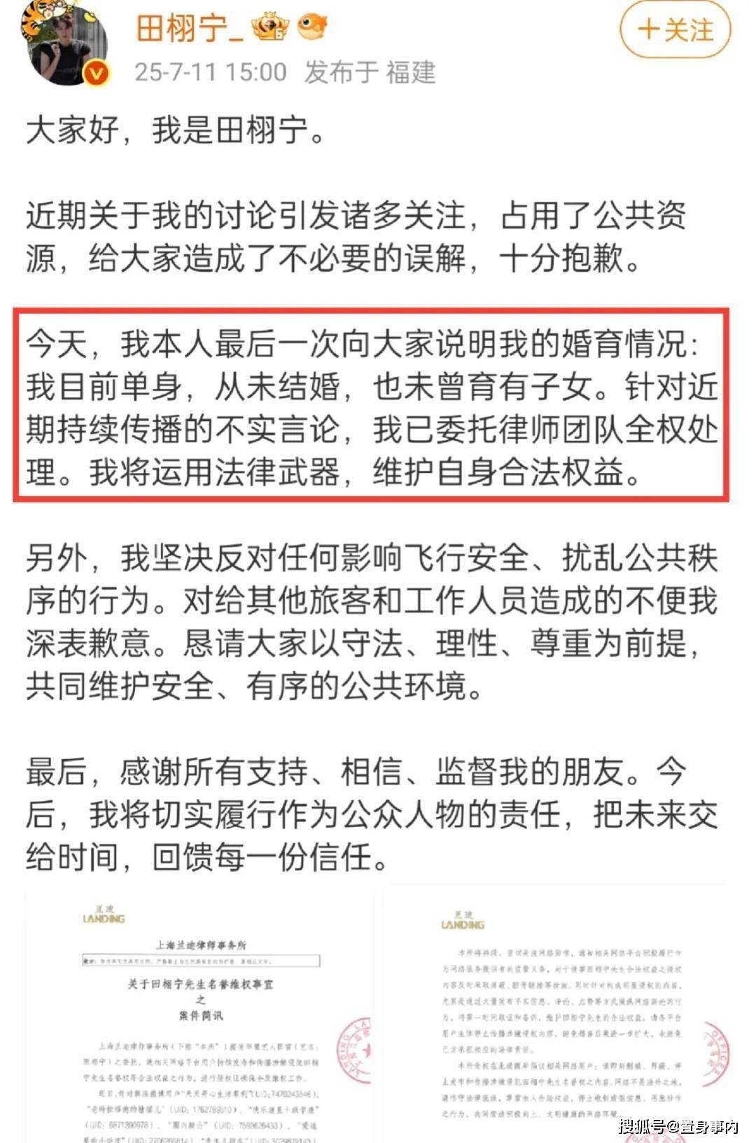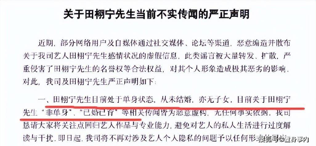 不过,这事儿没多久就被田栩宁的团队出来澄清了,他们表示那些照片都是误会,不像传的那样,他没有成家,也没有孩子。