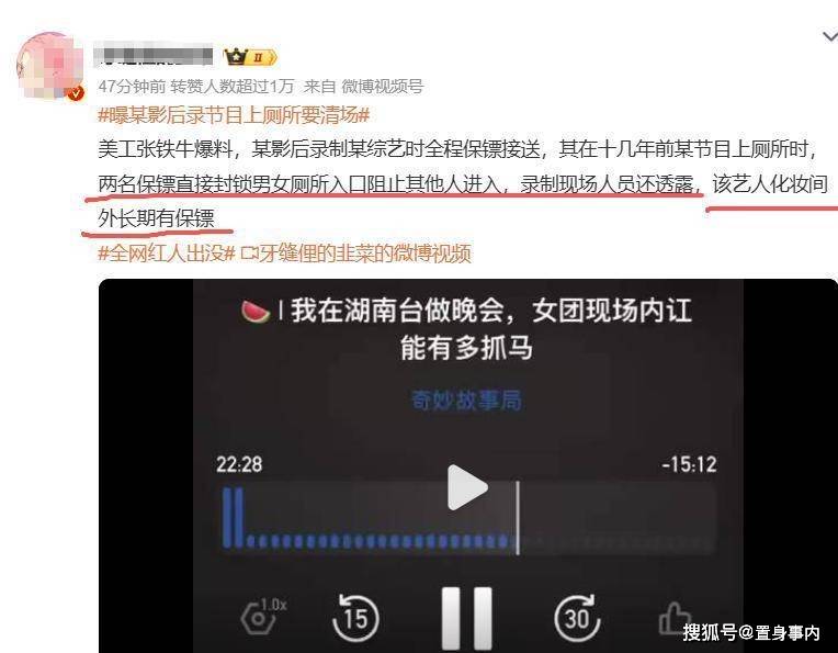 发帖的这个人自称是剧组里的工作人员,名叫张铁牛,他还透露有个影后在录制某档综艺的时候,整个过程都由保镖护送,而且场面相当气派。