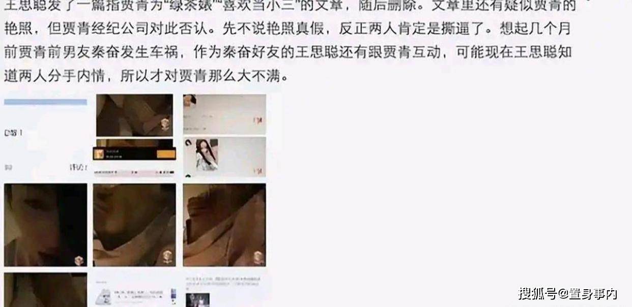 王思聪转发了一组内容挺刺激的帖子,直接点名批评贾青私生活乱七八糟,还暗示她是个“绿茶女”、喜欢当“小三”,公开讽刺她爱勾搭富二代、官二代,踩着别人往上爬。