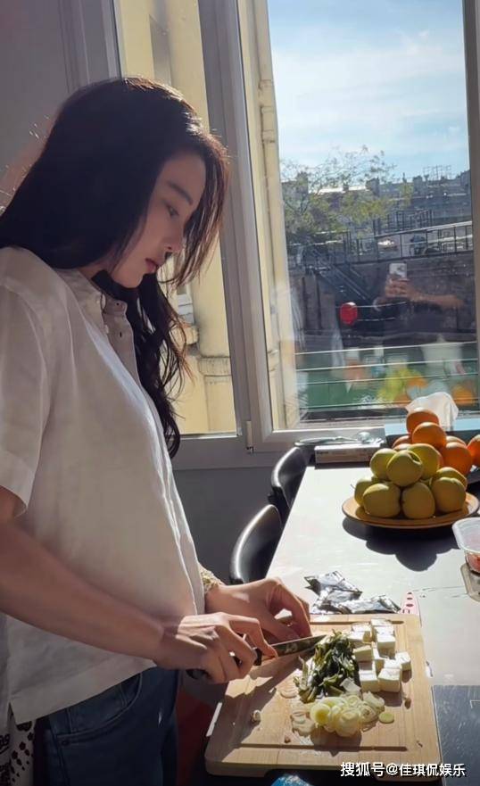 出差半个月回国后,换下了华服,张馨予在家也穿上了围裙,她在家里也洗菜做饭。张馨予全程都非常的认真专注。