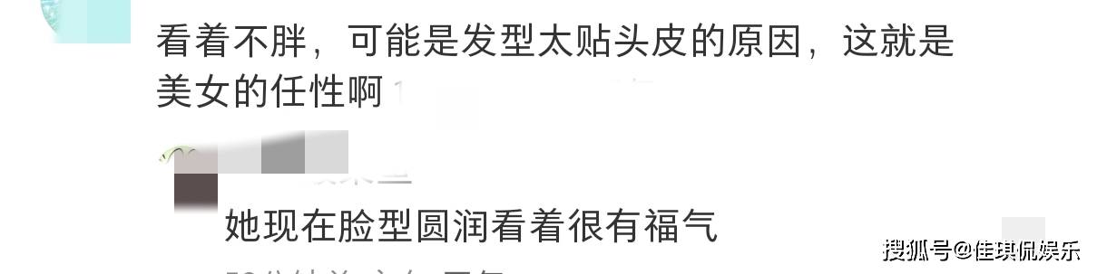 可这次露面,她却整个人胖了一圈,棱角都不怎么分明了,锁骨也看不到了,再加上她穿的衣服比较宽松,整个人看着像120斤似的,看着比太阳还大一只。