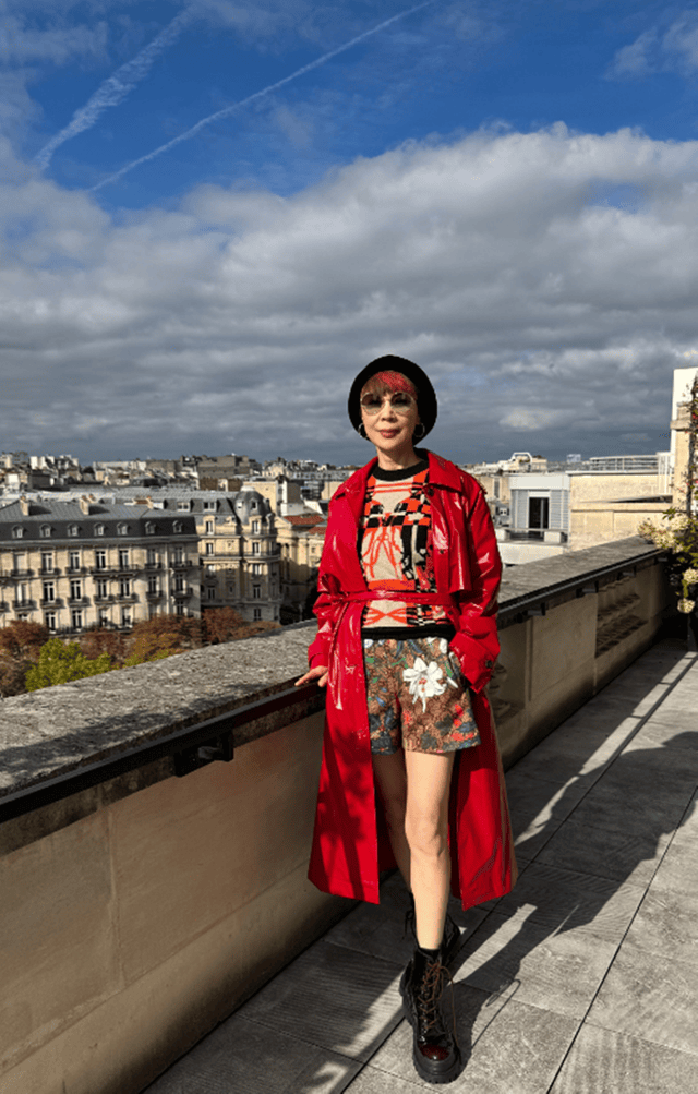 比吴刚要小5岁的岳秀清也很会穿,当日她身穿橙红色皮衣,衬得皮肤更显白净,墨镜遮面的她酷飒十足。