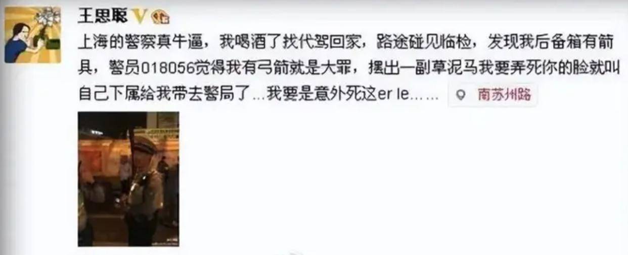 能把上亿身家过成普通日子,比单纯有钱要难上万倍2014年,王思聪在个人账号上发了这样一篇微博“上海的警察真牛逼,路上查酒驾,发现我后备箱有箭具,叫下属带着我去警局&rdquo