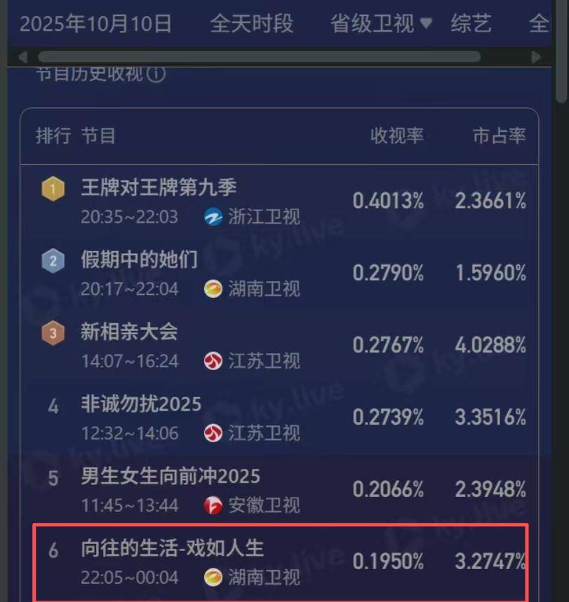 跟它一样出了很多季的《王牌对王牌》在观众审美疲劳的情况下,收视率还能达到0.4%,对比起来,《向往》算是史诗级血扑。