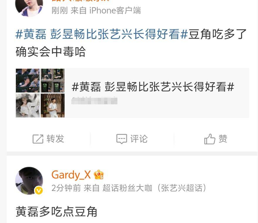 他说彭昱畅比张艺兴好看,像是生怕节目组不把他的话剪进去一样,同一句话接连说了两遍。