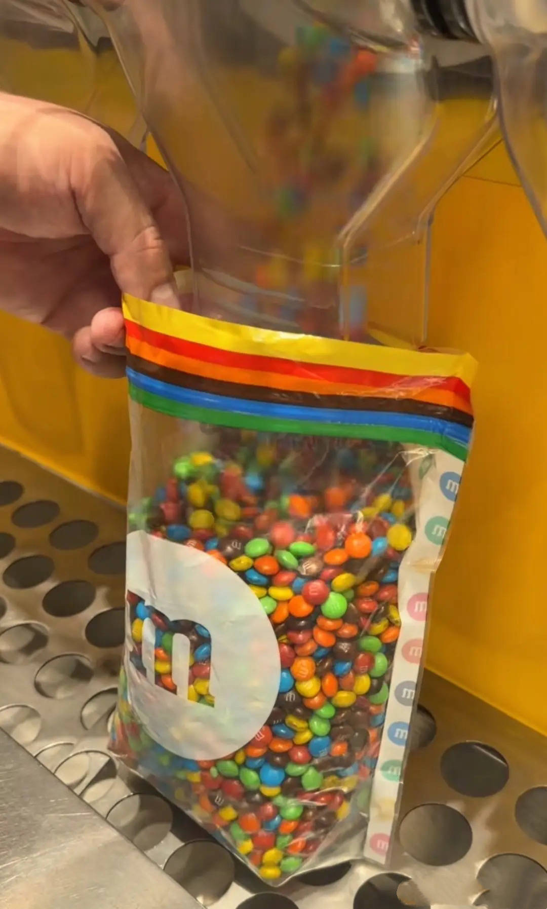 五颜六色的巧克力豆都进入到袋子里了,这个感觉看着太治愈了。巧克力豆都小小的,感觉抓一把都可以吃很久。