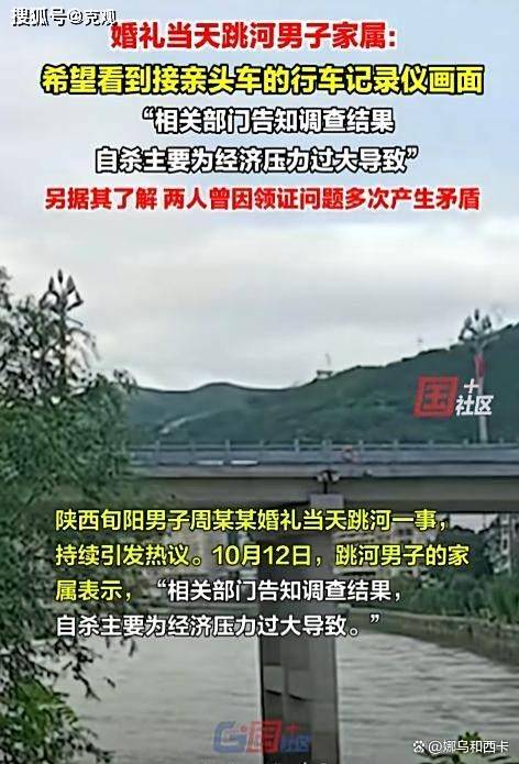 10月13日,多家媒体报道,婚礼当天跳河的家属接受采访,家属透露,