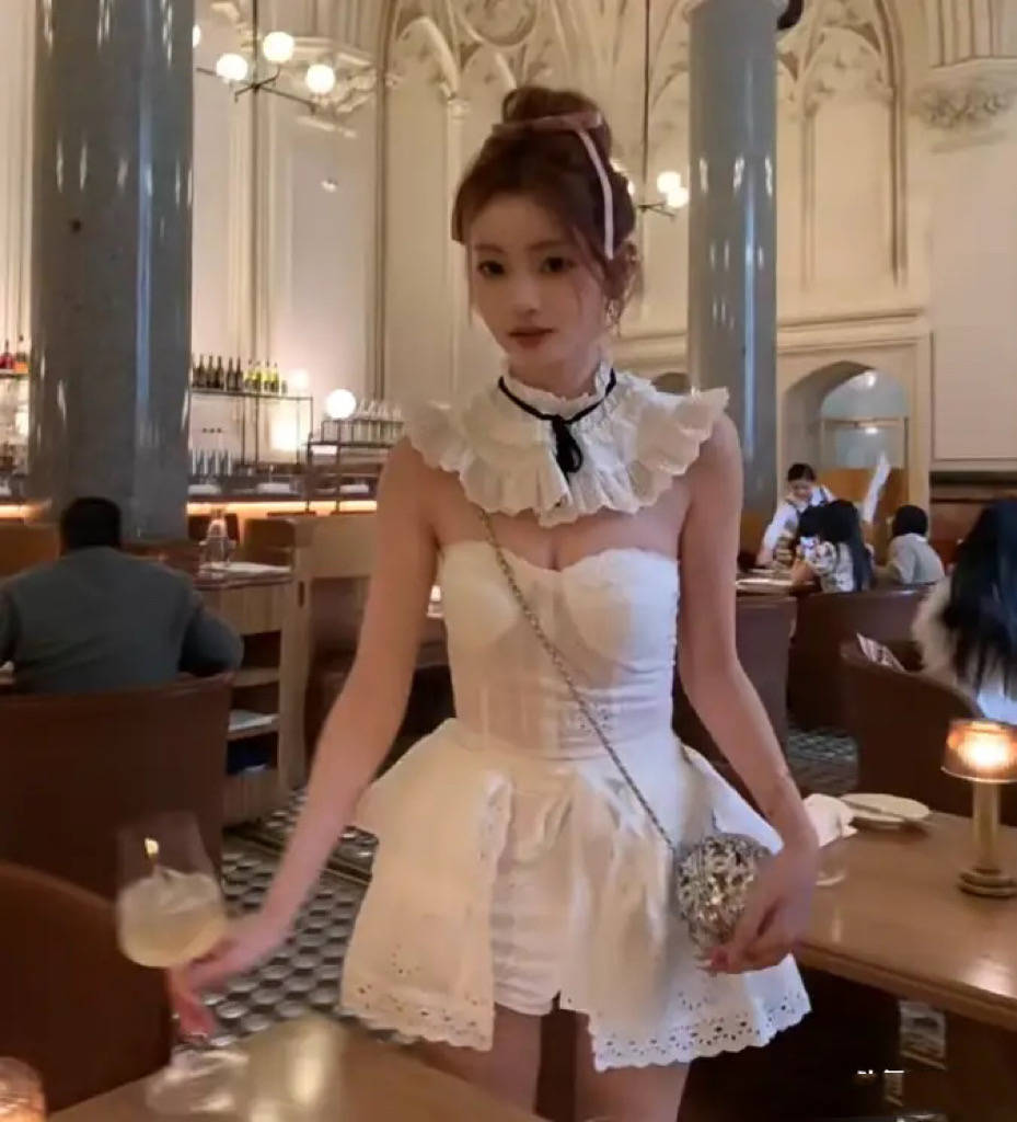 相对于奢华的环境,更引人瞩目的则是懒懒的穿搭。即便是在高档场所、懒懒也穿了一身“女仆装”,这打扮显得有点讨好的取向。
