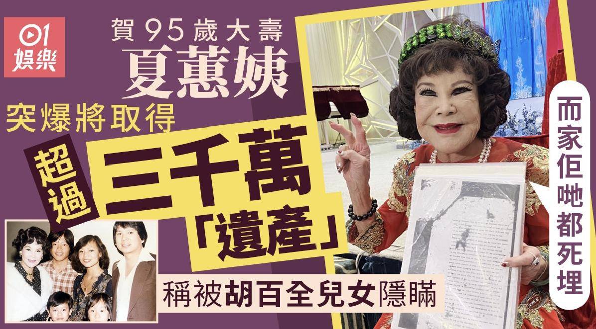 香港女星黄夏蕙迎来了95岁的生日,她一早就已经预告95岁生日会大肆庆祝,果然她没有食言,在尖沙咀宴请了60桌,有大约500人参加,相当隆重。黄夏蕙在生日宴前接受媒体访问,被问及生日愿望的时候,她自曝要追回前夫胡百全留下自己所应得的遗产,大概有三千万,同时也宣布在拿到这笔钱之后,将会用作善事,建设养老院,为孤寡老人谋求安身之所,自己也将会搬进去生活。