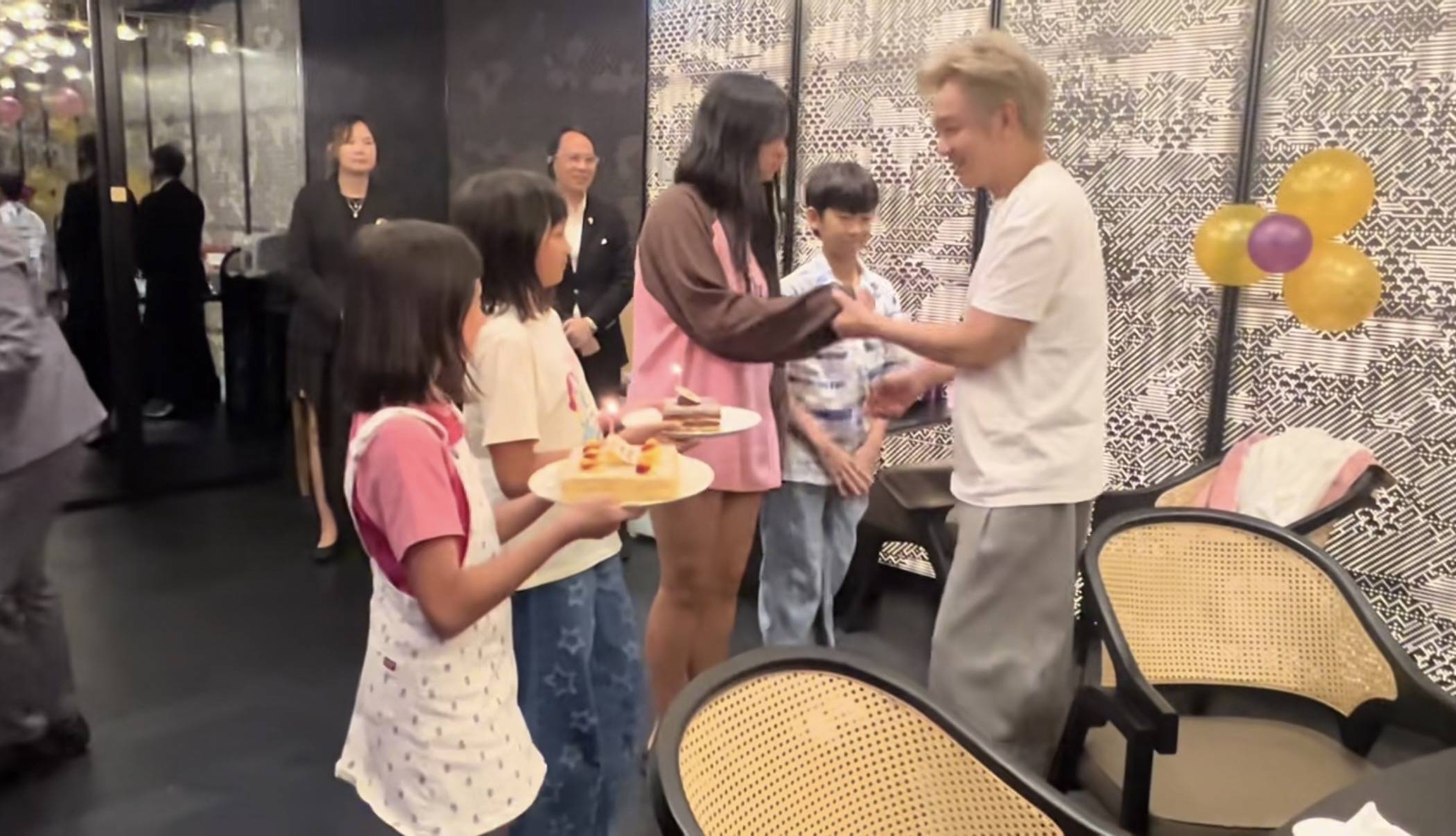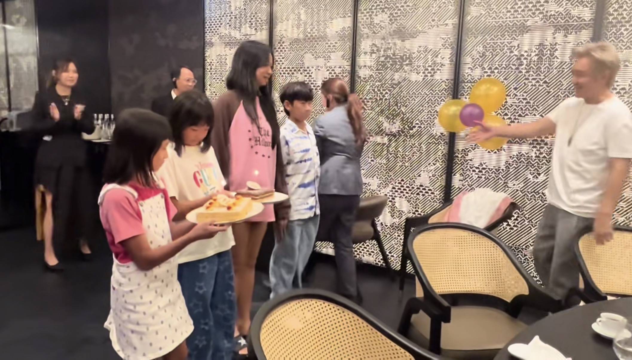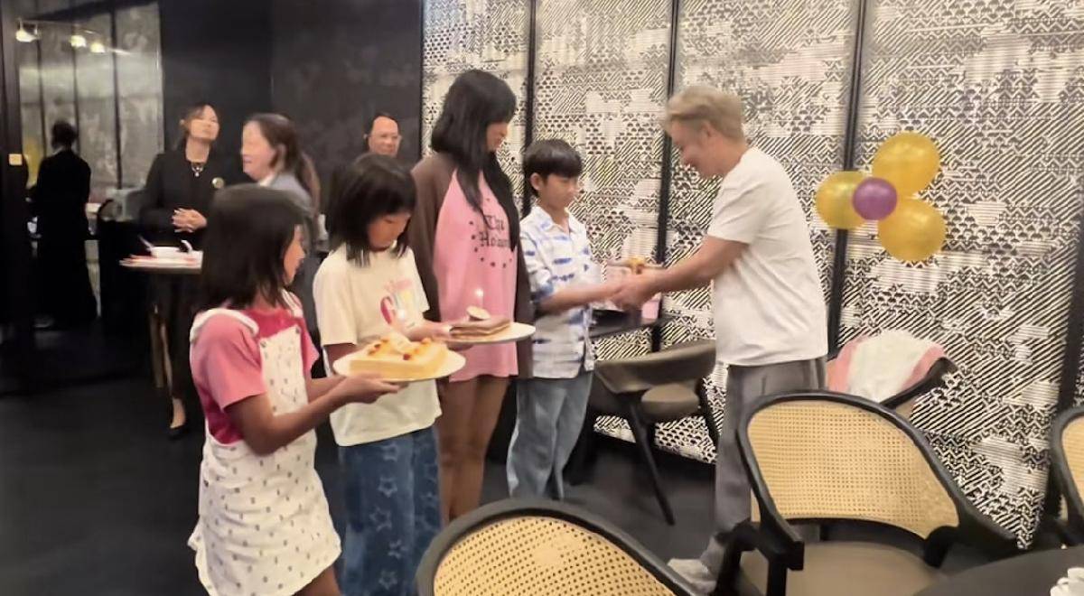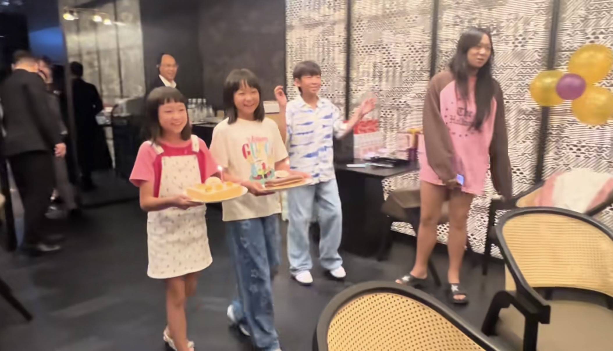 全家吃饭为陈浩民庆祝生日,陈浩民称不知情,还称是措手不及的生日。可能是因为太忙了而忘记了自己的生日,结果陈浩民在招呼父母的时候,突然包厢的门被推开,看到孩子们为自己庆生,受宠若惊。陈浩民12岁的儿子率先走进包厢,身后是两个女儿,一人捧着一个蛋糕,随即陈浩民的儿子就拍起手掌高唱生日歌,在场的14岁大女儿也跟着鼓掌,而陈浩民的岳父岳母也一起鼓掌唱歌,整个现场氛围融洽、温馨。陈浩民一时间还显得有点不知所措,之后他从座位上走到子女面前,一一与子女握手言谢,大概也是被子女的孝心所感动了。