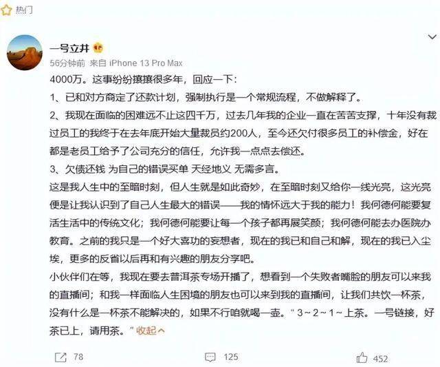 他曾在2023年因4000万债务被强制执行时坦言:“欠员工补偿金未付,困难远不止这些。”