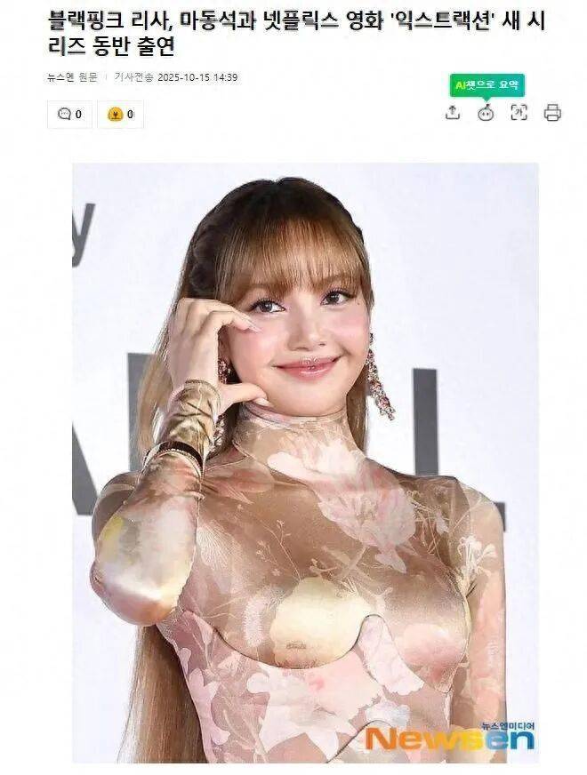 又一则消息在韩娱和影迷圈投下震撼弹:BLACKPINK成员LISA正式确认,将与“韩国最强男人”马东锡共同出演Netflix动作电影《极限营救》的新系列!据韩国媒体10月15日报