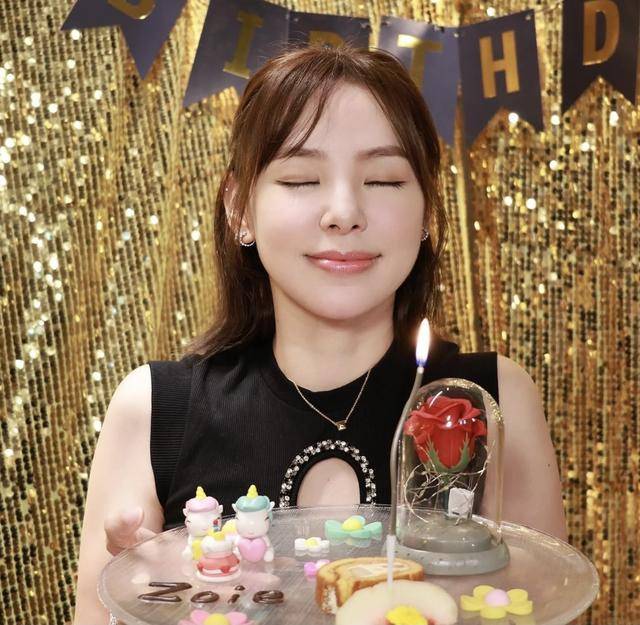 从合照中看得出,作为寿星的谭凯琪穿着修身的深色上衣,胸前的镂空设计可以说是一大亮点,虽然没有过分的打扮自己,但是看得出她也是花了心思。