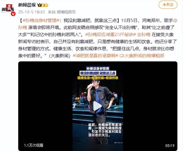 孙楠没靠减肥药,没搞节食休克疗法,就靠吃饭、运动、睡觉这三件 “小事”,不知不觉就瘦了下来。